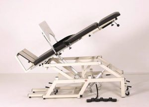 Electrically operated Tilt Table with foam padded top, provided with three straps to hold the patient.