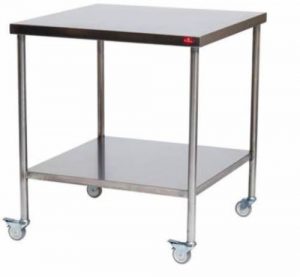 AD-840/10 PACK TABLE Description: Stainless steel structure Two smooth shelves 100mm rolling wheels Dimensions: 95x55x95H cm Applications: cleaning Use: meal Components: 1-tray